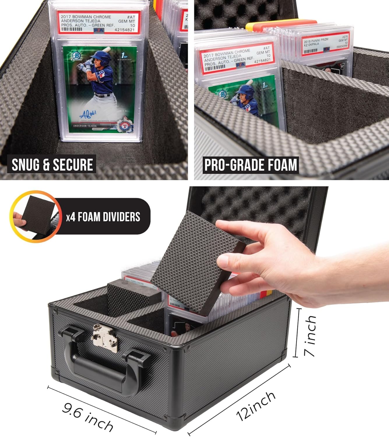 - 【 PSA SLAB CASE 】Our Baseball Card Boxes Storage has a Lock Combination and 6 Foam Dividers for a snug fit. Those features make this card case holder for trading cards ideal for a baseball card display