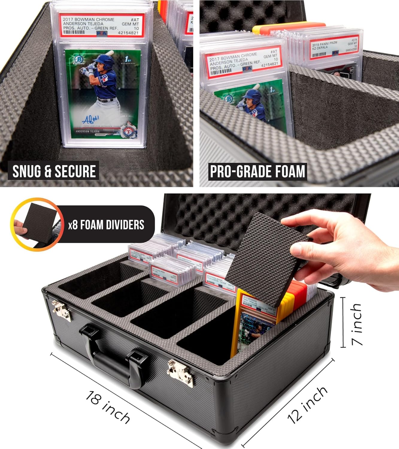 • 【 PSA SLAB CASE 】Our Baseball Card Boxes Storage has a Lock Combination and 6 Foam Dividers for a snug fit. Those features make this card case holder for trading cards ideal for a baseball card display